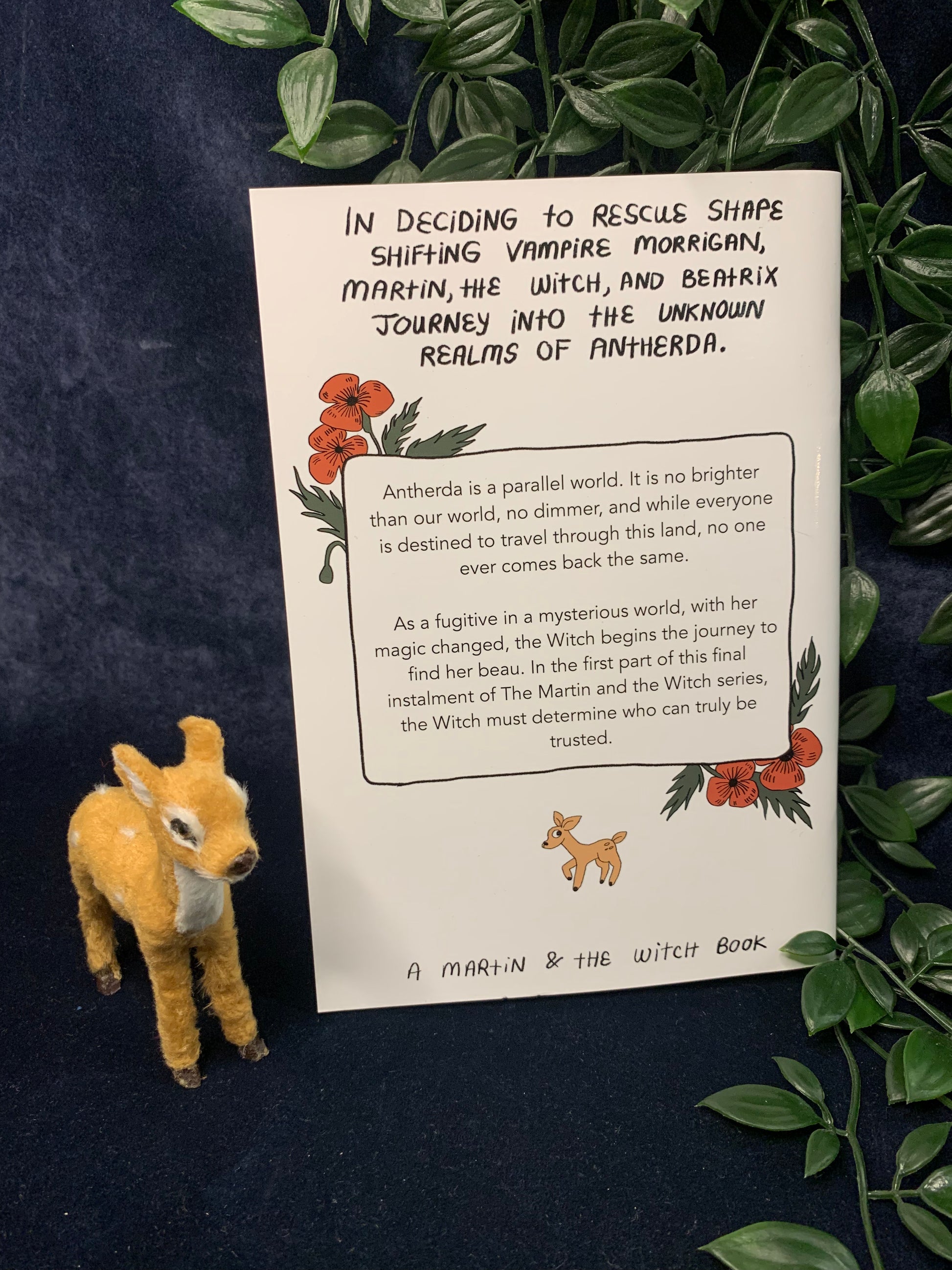 "In pursuit of her lover, the Witch enters the mysterious hidden realm of Antherda, the land of the inbetween, alongside familiar Martin, and new friend Beatrix. The Witch must find help to get to Morrigan, but who can be trusted?"